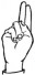 На ћирилици написано ЛУНА АРСЕНИЈЕВИЋ састоји се из 15 слова [?]. Исписано ћириличном једноручном азбуком за глувонеме: